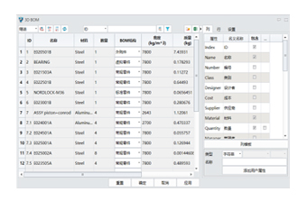 Informasi atribut dari semua bagian dapat ditampilkan dalam baris dan kolom Bill Of material ( BOM )3D, diedit, dan langsung diekspor ke gambar teknik 2D.
