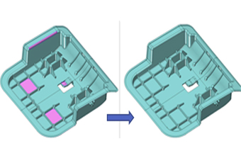 Menganalisis dan dengan cepat memperbaiki kondisi abnormal (misalnya tepi terbuka, celah, permukaan duplikat, loop persimpangan) yang ditemukan dalam geometri file yang diimpor.